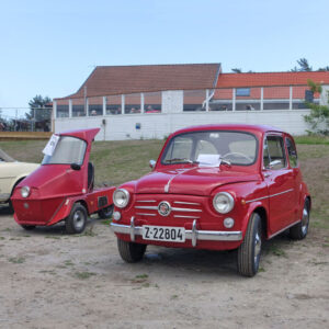 Det var en fin blanding av kjøretøy å kikke på da vi var innom. Som disse to røde doningene på bildet under. Fiat 600 D kjenner vi godt. Mye bil for pengene på 60-tallet. Men den andre, røde, var ukjent – i det minste for meg. Derfor har jeg søkt informasjon på svensk Wikipedia.